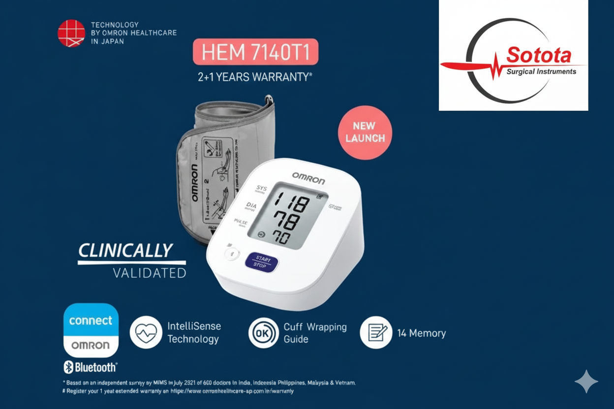 Automatic Blood Pressure Monitor HEM-7140T STANDARD. Simple one-touch operation for first-time users. This model comes with Bluetooth connectivity. Product Features Cuff Wrapping Guide Guides user to the right cuff wrap by indicating âOKâ to ensure an accurate and reliable blood pressure measurement Hypertension Indicator Heartbeat symbol blinks if your systolic or diastolic pressure is outside the standard range (above 135 systolic/85 diastolic mmHg). IntelliSense Technology With a press of a button, the IntelliSense Technology delivers accurate measurements with comfort and ease of use. The IntelliSenseâĸ Monitor inflates the cuff to the ideal level with each use. No adjustments are required by the user to select an inflation level. This is especially convenient for hypertensive users and for people with certain arrhythmia or heart disorders, because their blood pressure is likely to fluctuate. Advantages of IntelliSense Technology Fully automatic Personalized inflation for maximum comfort Quick deflation releases valve for speedy measurement BluetoothÂŽ Connectivity Allow you to track your readings via OMRON connect by wirelessly syncing to your smartphone.